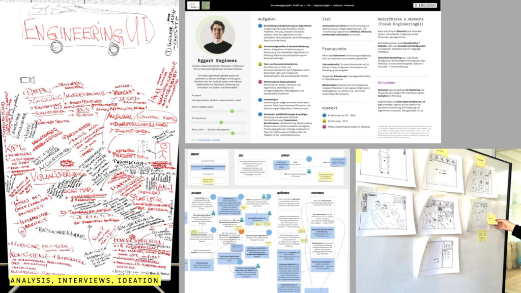 The derived HMI concepts are demonstrated in simulator and real-world vehicle studies. Ergosign is also developing an Engineering UI that visualizes sensor and vehicle information in real-time to provide system engineers with valuable information and functions in the development process.