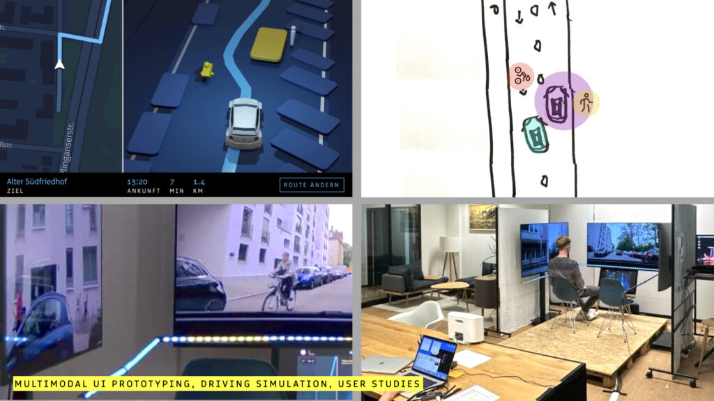 Our project team at Ergosign designs and evaluates interaction concepts for the comprehensible and efficient explanation of automation behavior to increase the acceptance, trust, situational awareness, and sense of security of vehicle occupants in complex inner-city traffic situations.